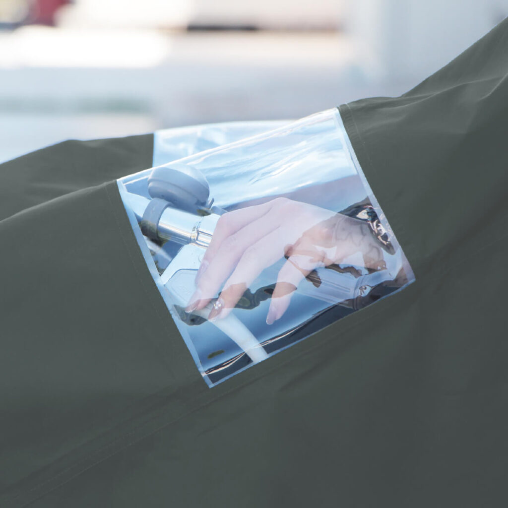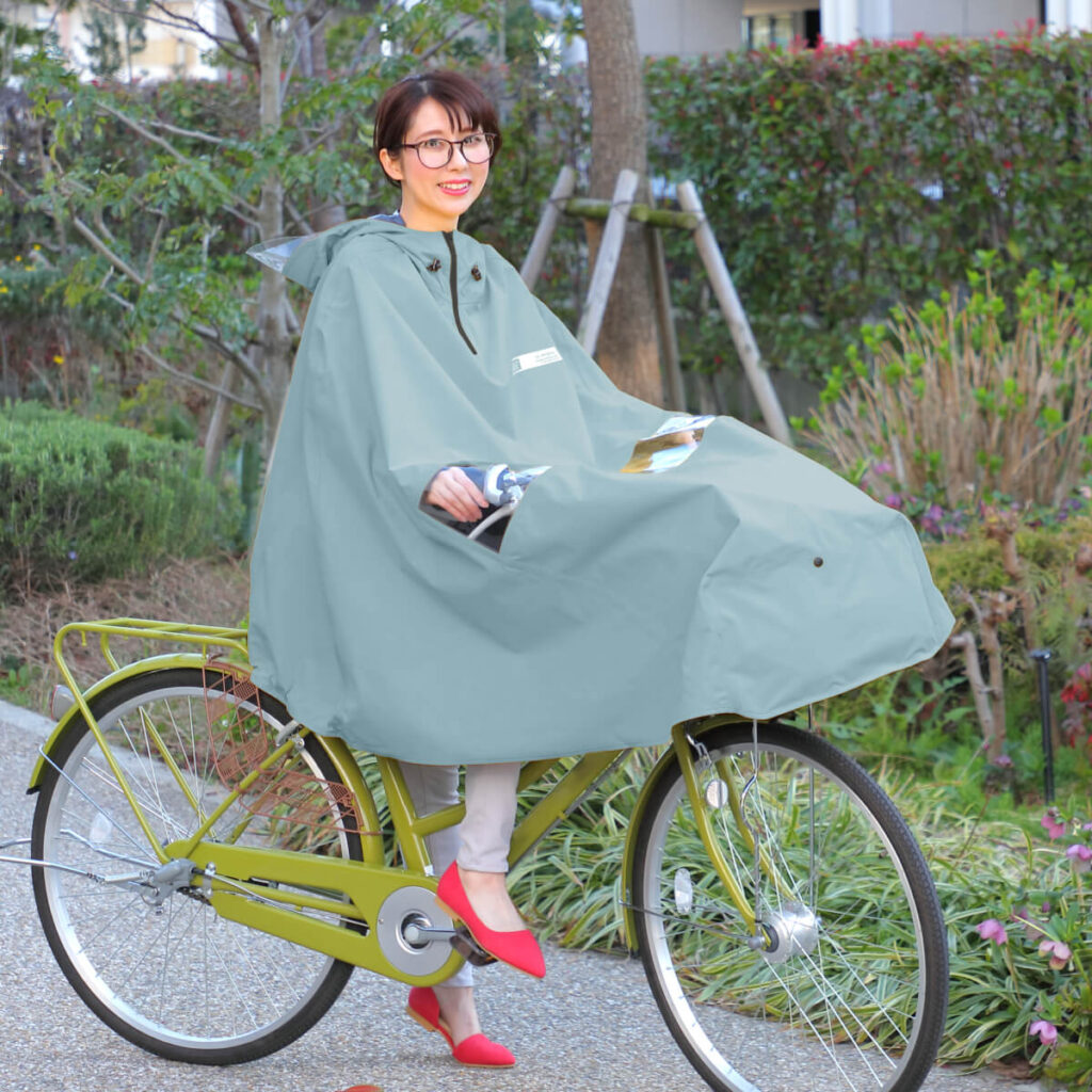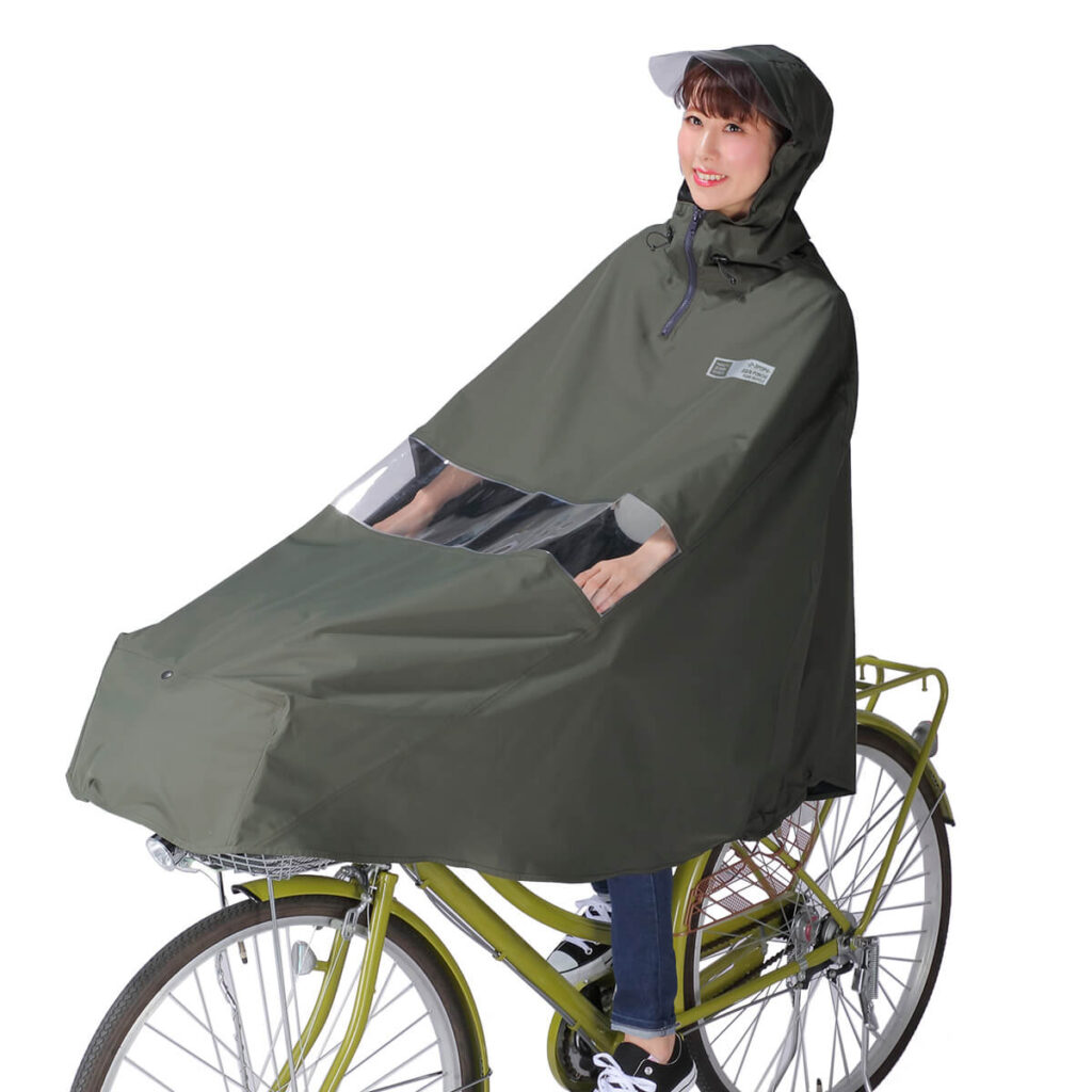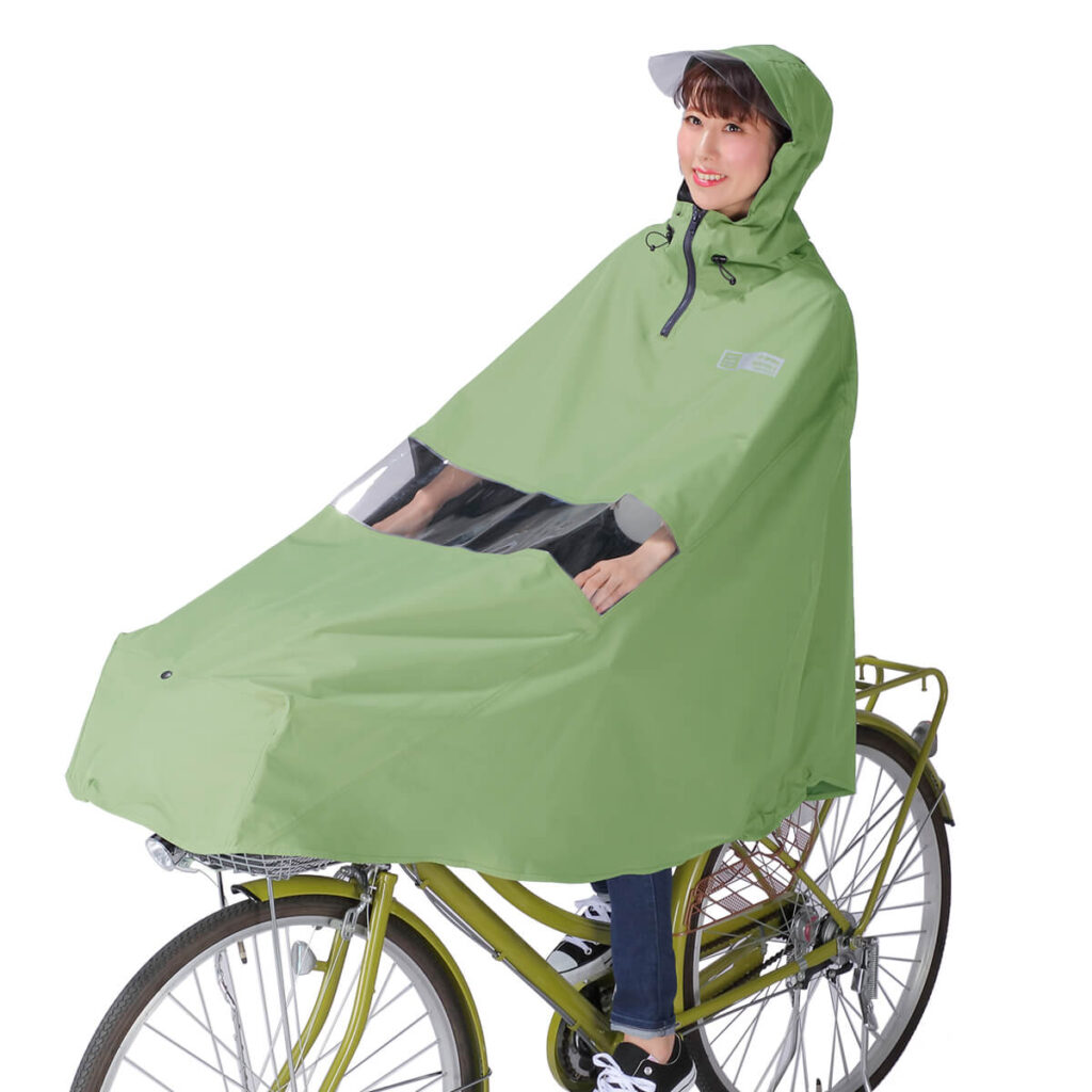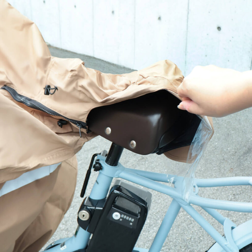 手元だけが透明なので、ポンチョを着たままでも、スイッチ・変速操作がしやすい設計です。