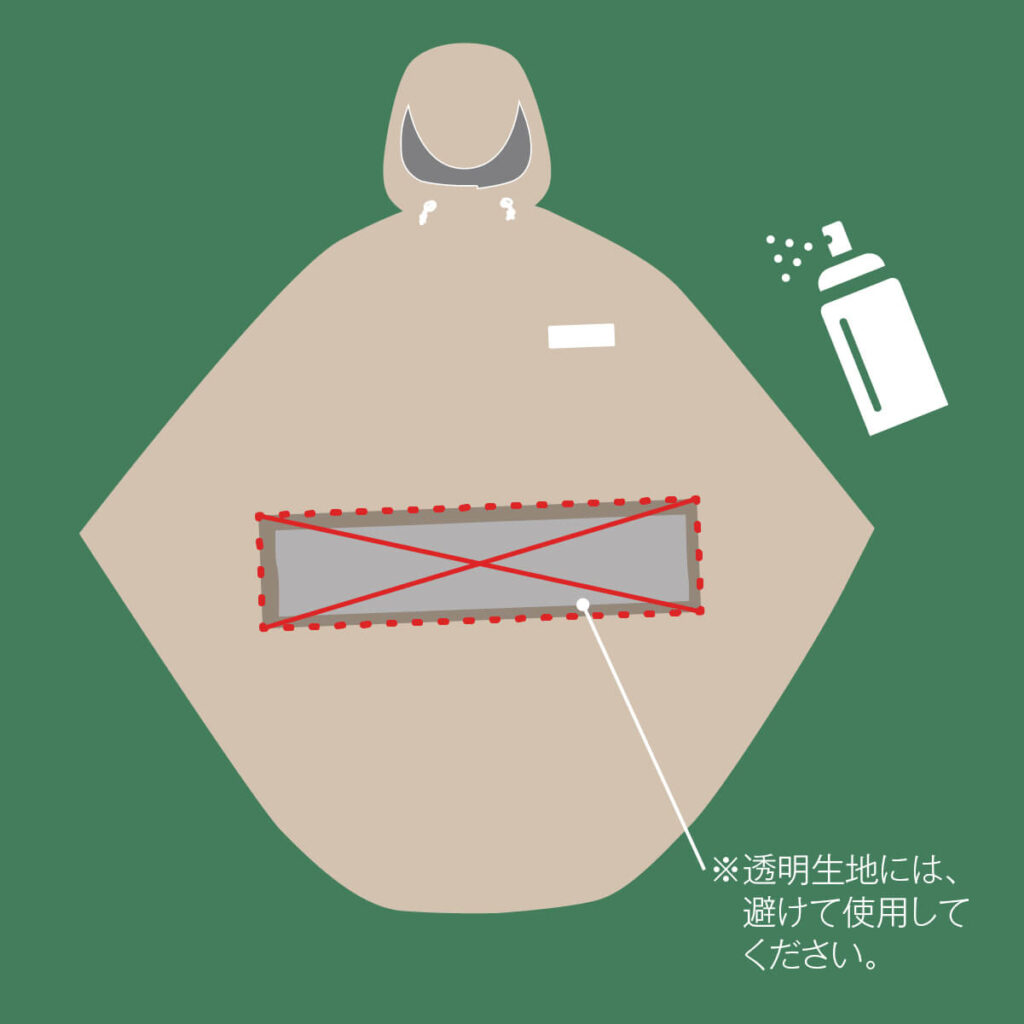 | お手入れ方法 | ・洗濯は軽く押し洗いしてください。洗濯機や脱水機、乾燥機の使用は絶対にしないでください。生地のコーティングがはく離する原因となり、防水性が著しく低下します。 ・ご使用後は陰干しにして自然乾燥させてください。濡れたまま保管しないでください。カビや色落ちの原因となります。 ・水洗い後は撥水効果がなくなります。撥水が弱くなりましたら、市販の防水スプレーをご使用ください。 |