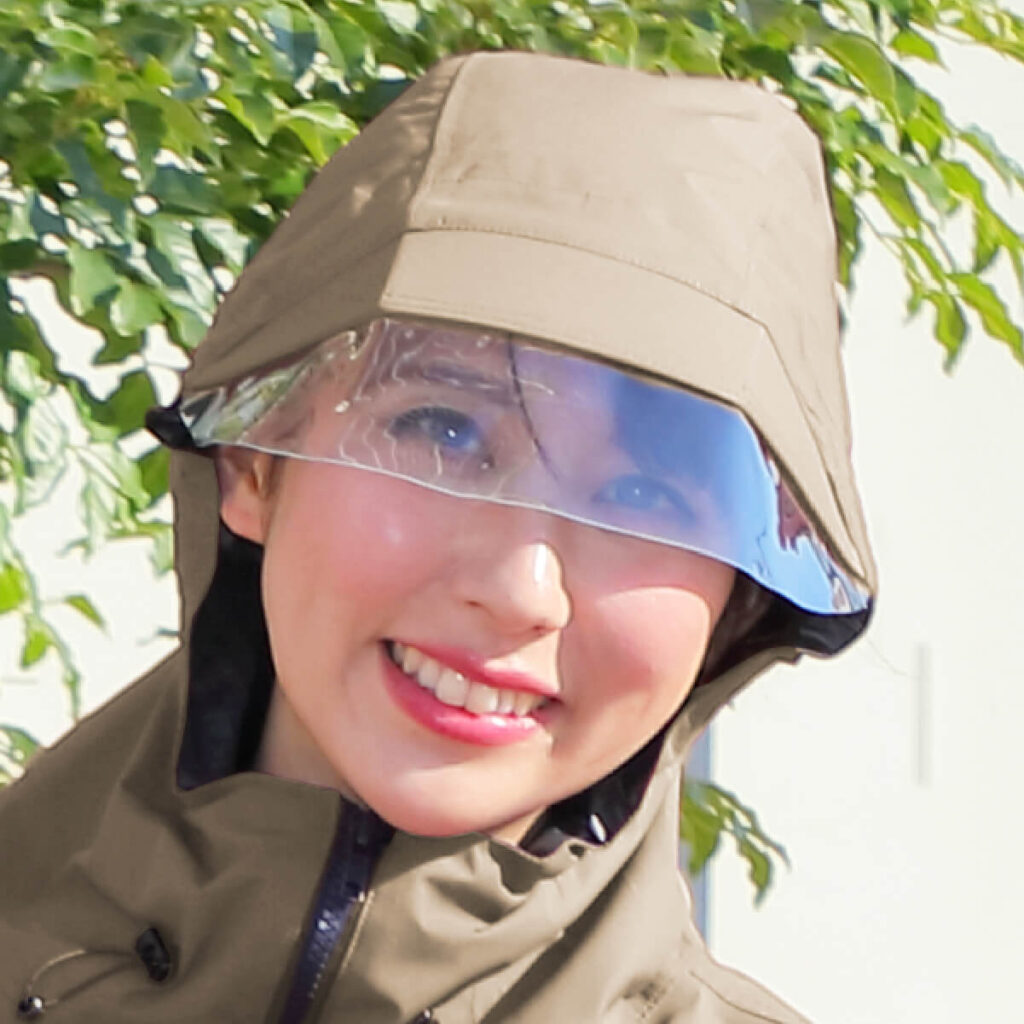 長くてしっかりしたツバだから顔が濡れにくい!しっかりと雨粒をガードしてくれるので、化粧が落ちづらい。