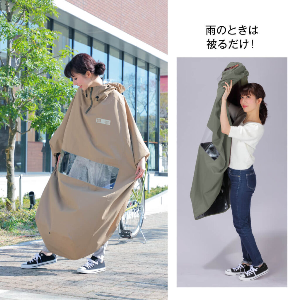 レインコートのようにボタンを留める必要がなく、被るだけで手早く着用できます。