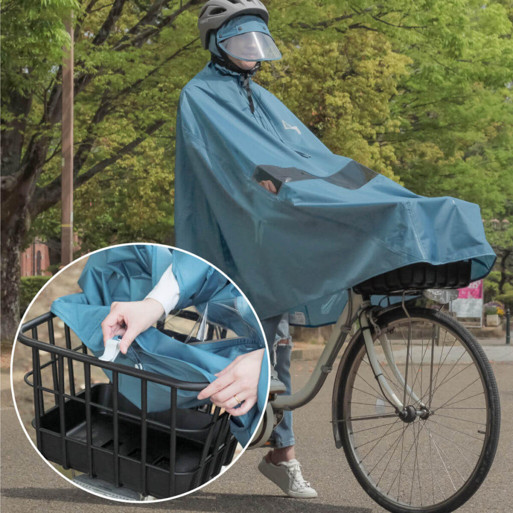 前カゴまですっぽり覆える自転車専用設計で、荷物が濡れるのも防いでくれます。