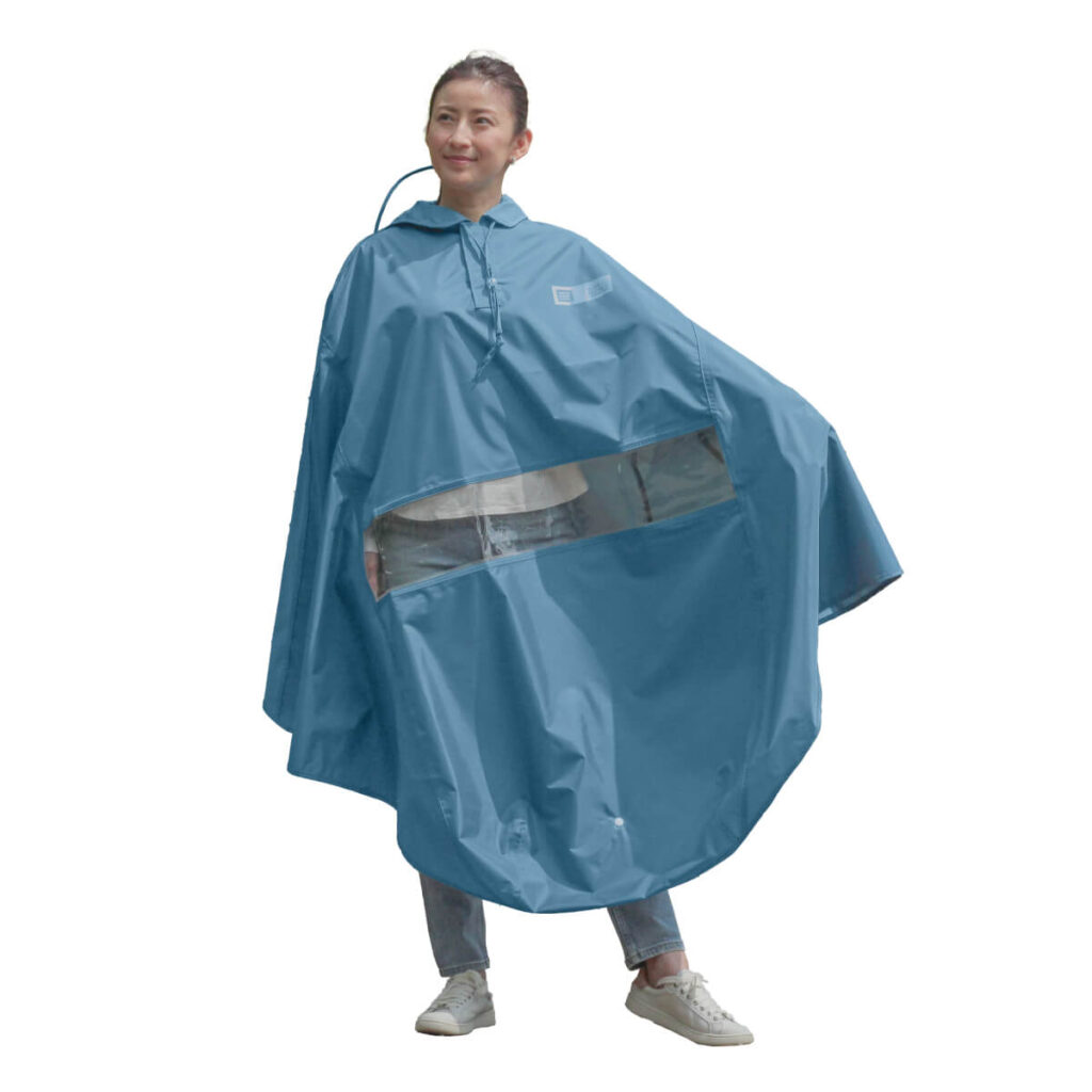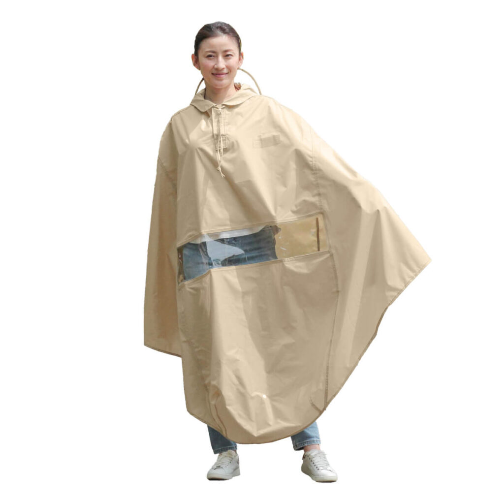 背面の大きなスリットのおかげで、リュックを背負った状態でもポンチョを着用できます。