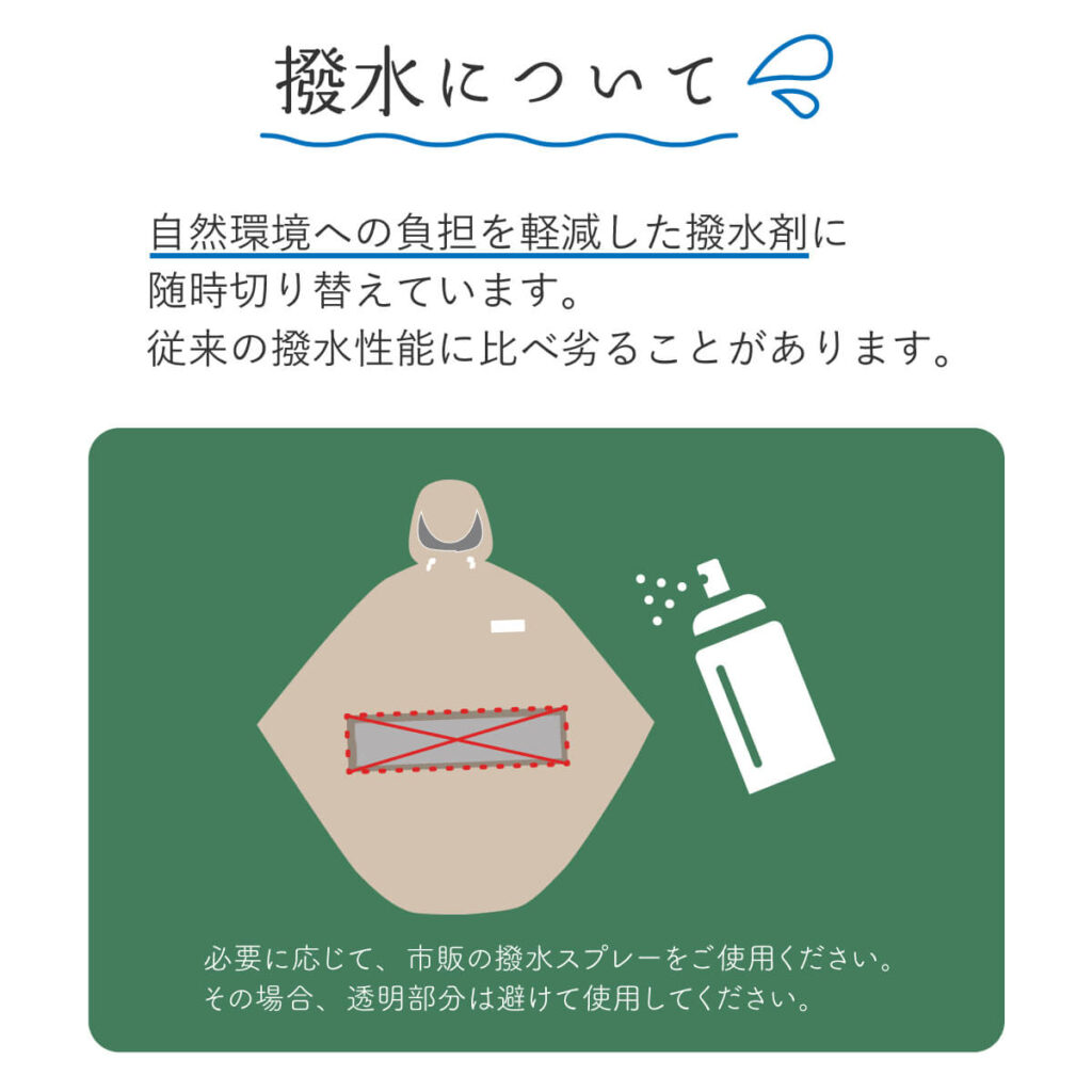 ※完全防水ではございません。生地に耐水性・防水性などはありますが、縫製品につき縫い目から水が浸入してくる場合がございます。
