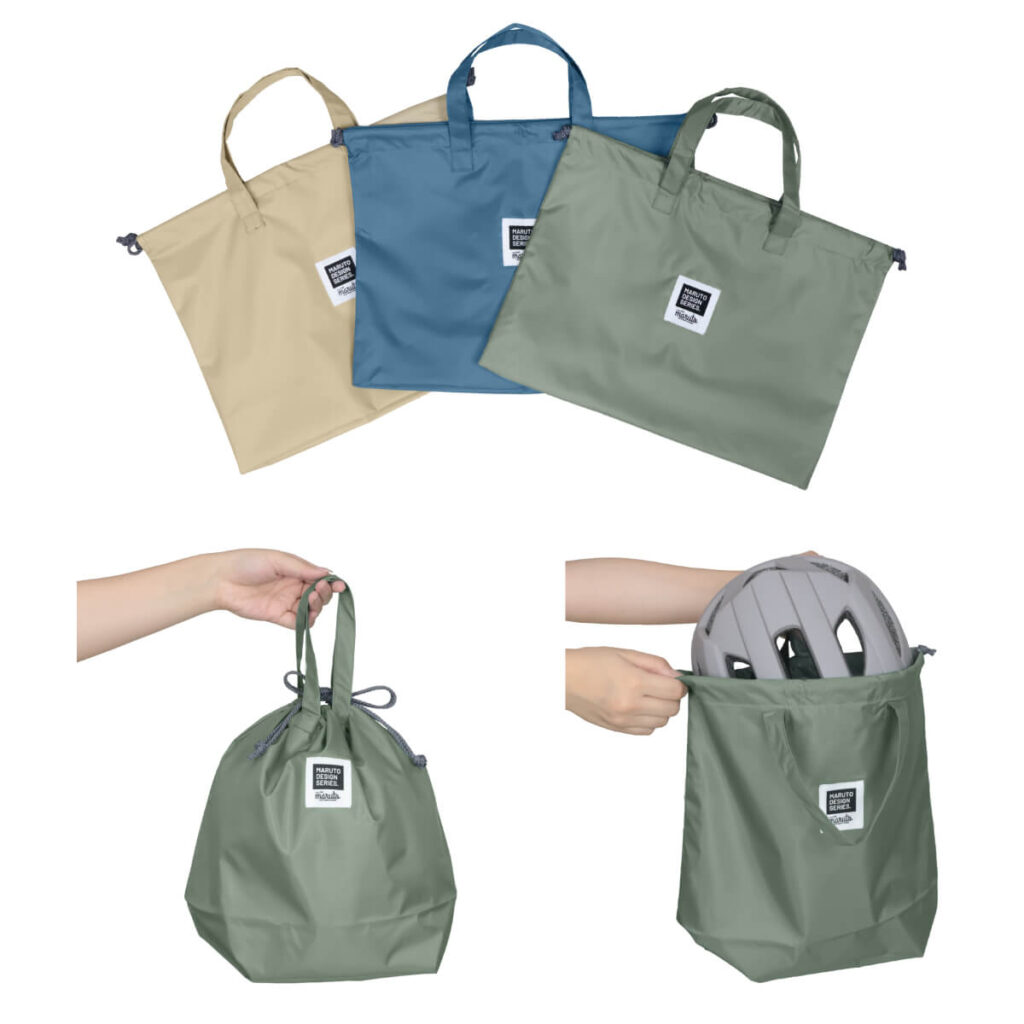 雑に畳んだポンチョやヘルメットもすっぽり入る大きな収納袋。