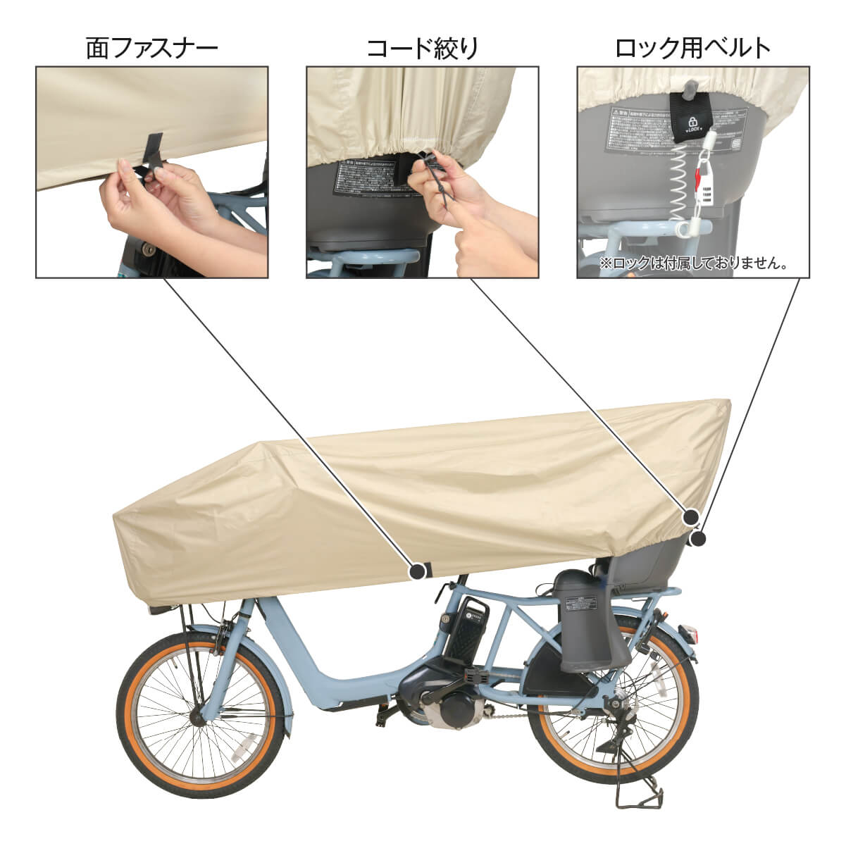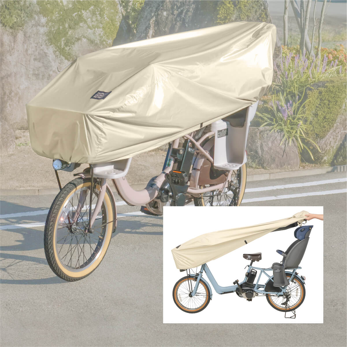 ※自転車・チャイルドシートの形状によっては、雨水が防ぎきれない場合があります。