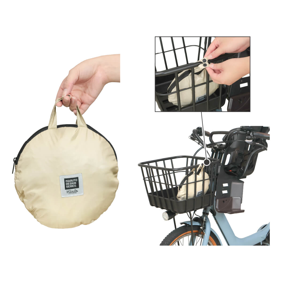ボタンでカゴに留めておくと、飛び出し防止になります。