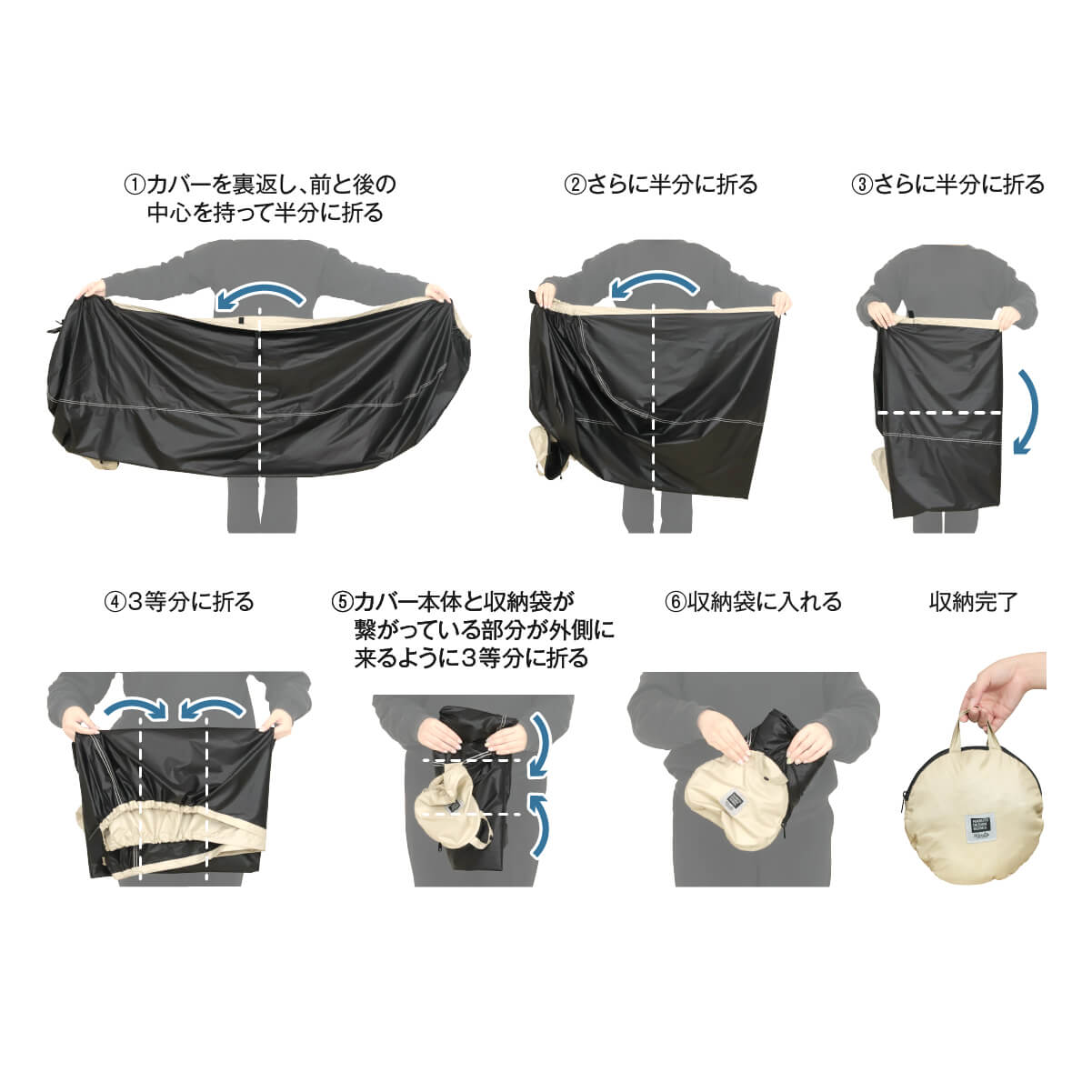 ※ゴミやほこり、水滴などが付いている場合は、畳む前に落としてください。