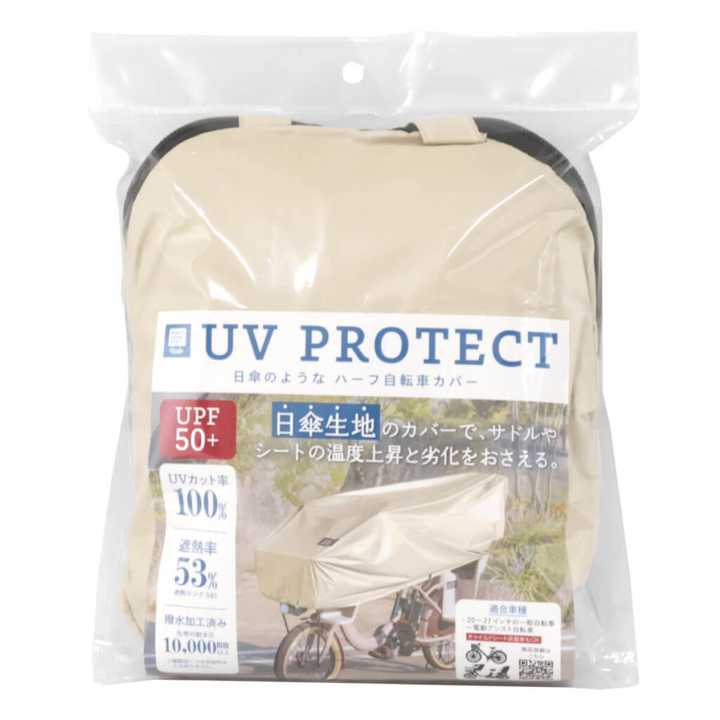 | 商品の特徴 | 日傘生地のカバーで、サドルやシートの温度上昇と劣化をおさえる。 UPF50+ UVカット率100% 遮熱率53% 遮熱ランクS45 撥水加工済み 生地の耐水圧10,000mm以上 ※縫製品につき完全防水ではありません。 |