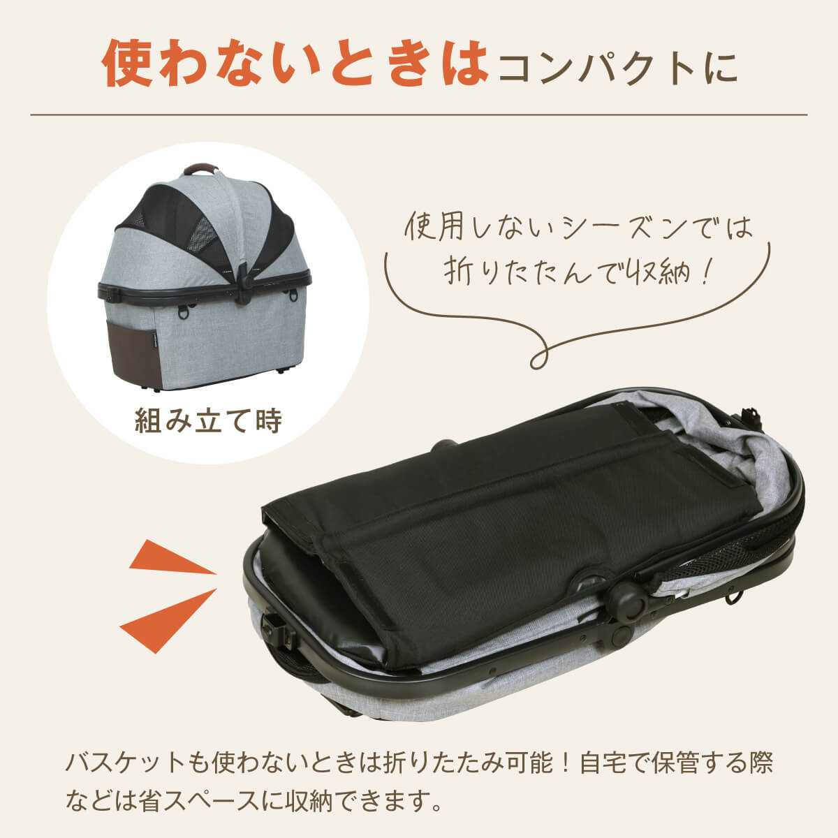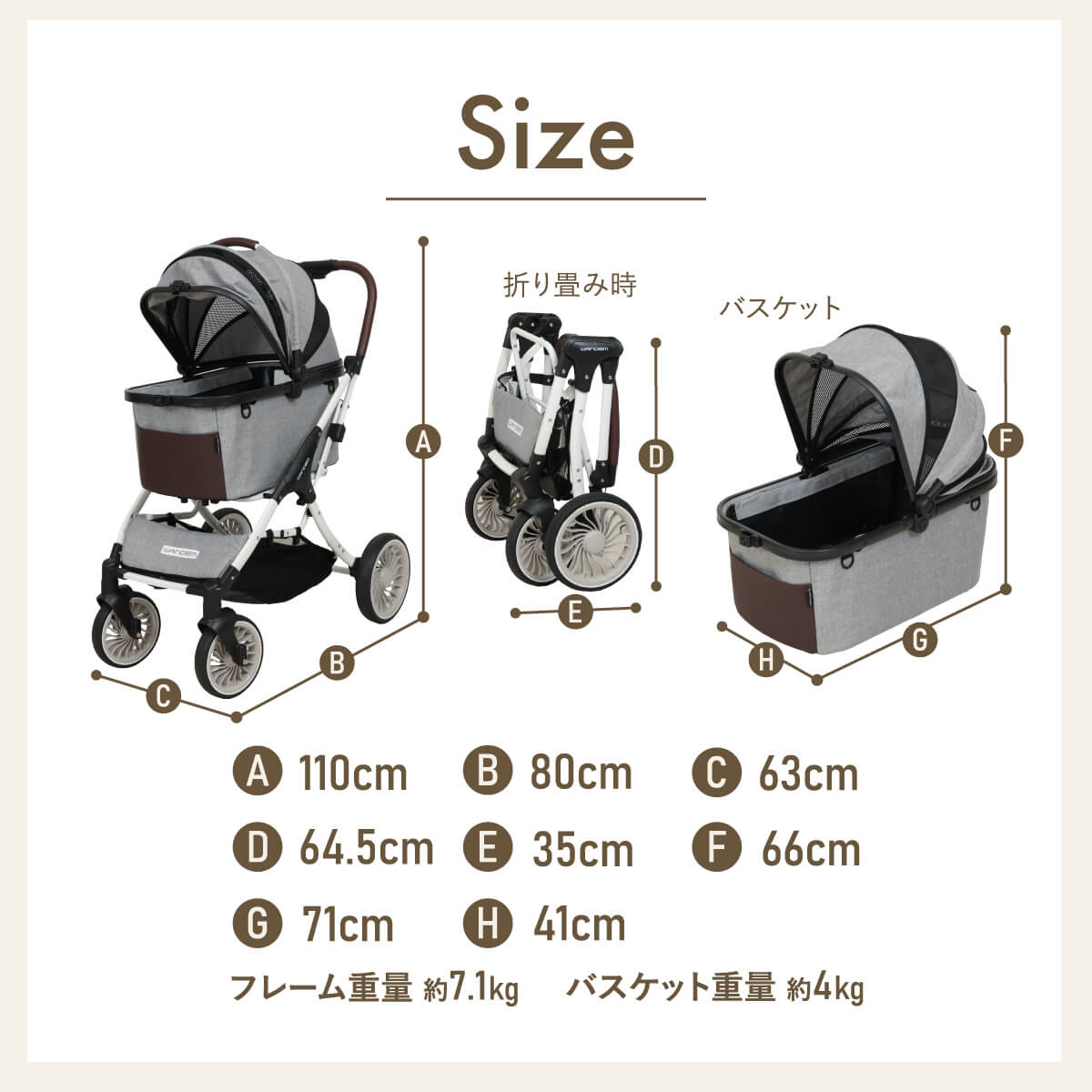 | サイズ | (約)H110×W63×D80cm 折り畳み時 (約)H64.5×W63×D35cm バスケット (約)H66×W41×D71cm |