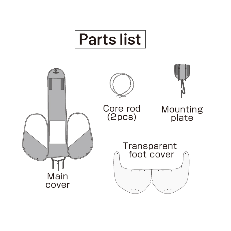 | parts | ![]() ・Mounting plate ・ Main cover ・ Transparent foot cover ・ Core rod (2pcs) |