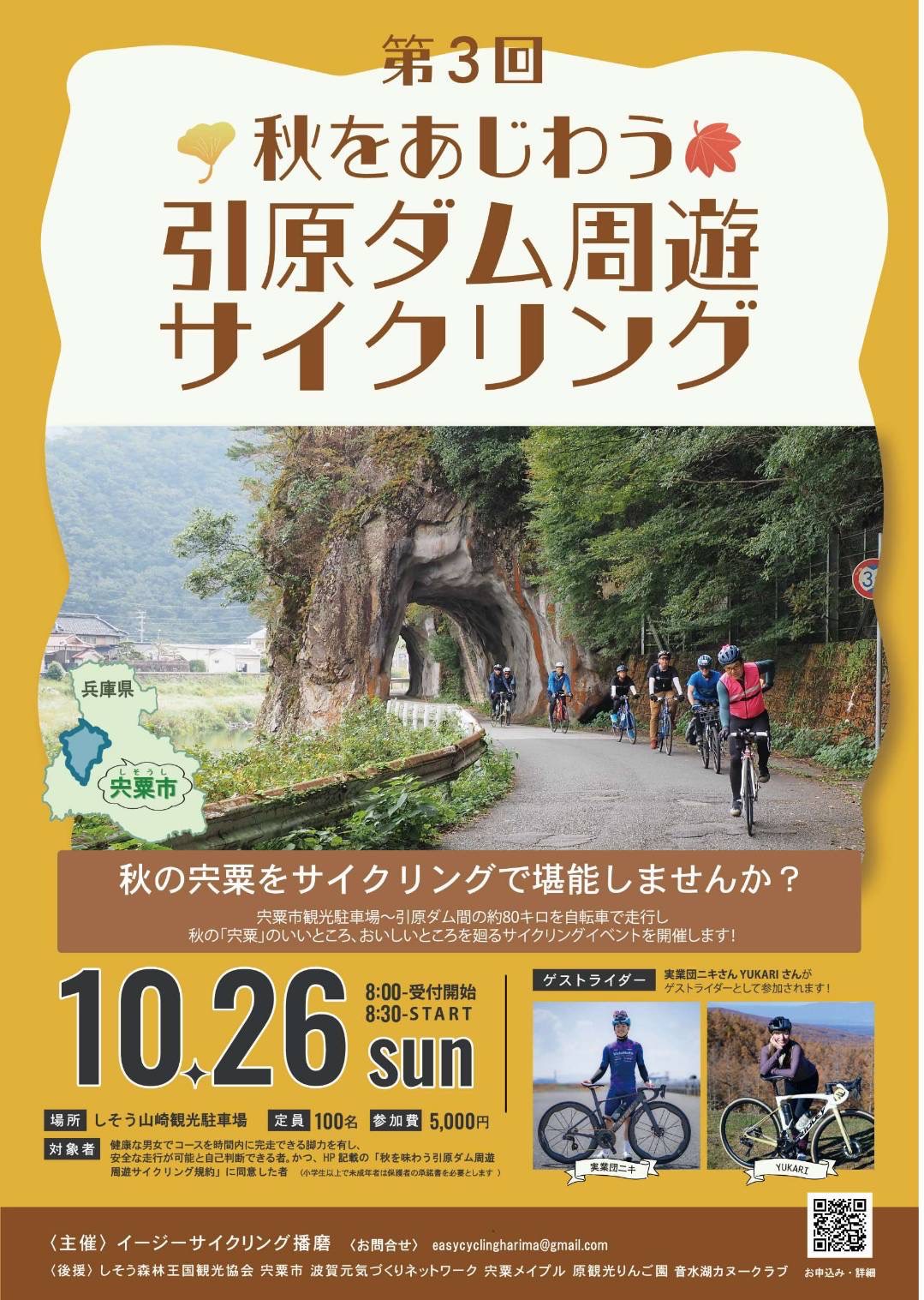 2025年10月26日に開催された、第3回秋を味わう引原ダム周遊サイクリングに、サポートライダーとして、参加してきました。 イベント概要と当日の様子このイベントは兵庫県宍粟市で開催され、開催場所はしそう山崎観光駐車場に集 […]