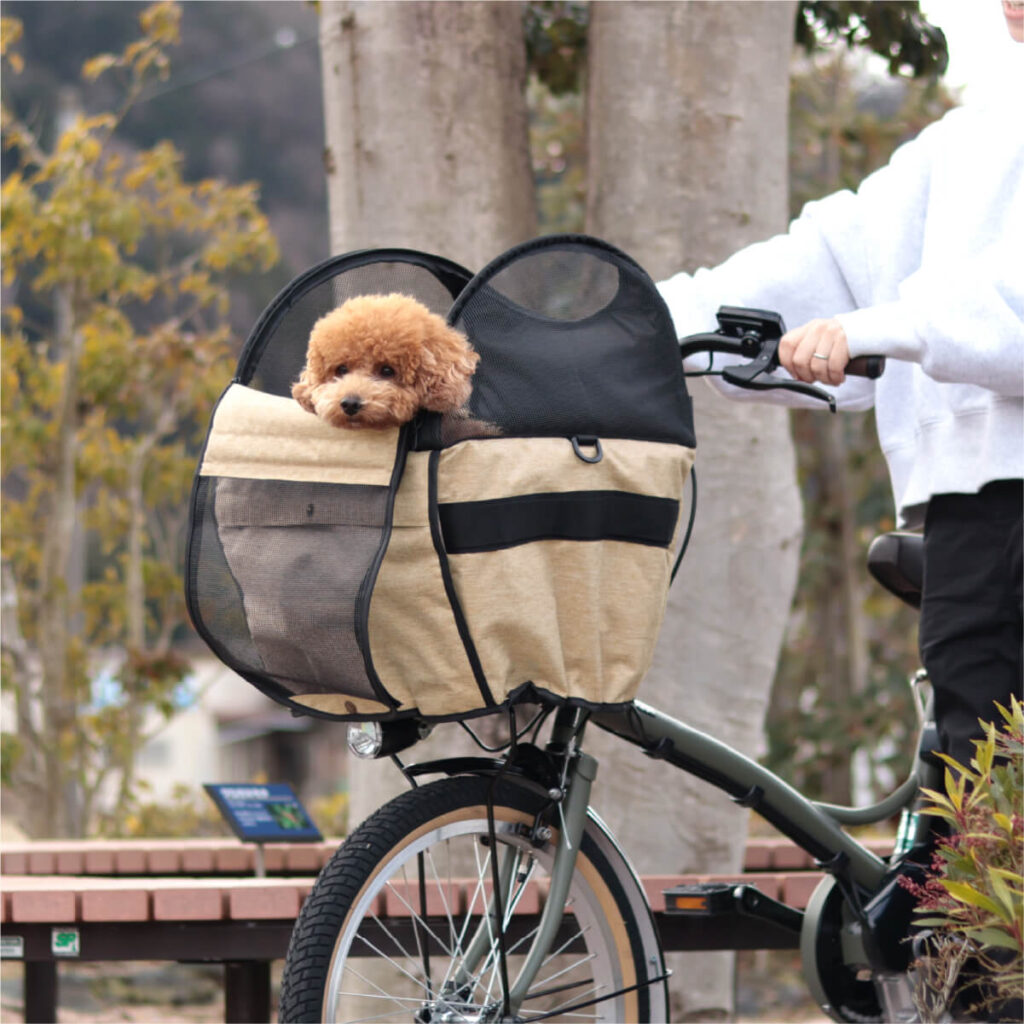 いつもの自転車が、ワンちゃん専用の「特等席」に。