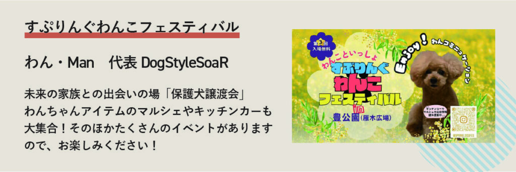 ●当イベントでは、ワンちゃん1匹につき飼い主様お1人以上でのご参加をお願いいたします。
