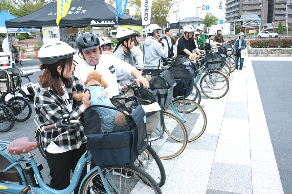 | 参加条件 | ・超小型犬から小型犬※6キロ未満のワンちゃん(前カゴ積載量制限に準ずる) ・ワンちゃん1匹に対し飼い主様一人以上 ・電動アシスト自転車や自転車に乗った経験がある方 ・ヘルメットの着用お願いします(無料貸し出しあり) ・イベントの写真撮影・動画撮影に協力してくださる方 ※今後ホームページ等で使用する可能性があります。 ・交通規則、マナーを必ず遵守してください。 |