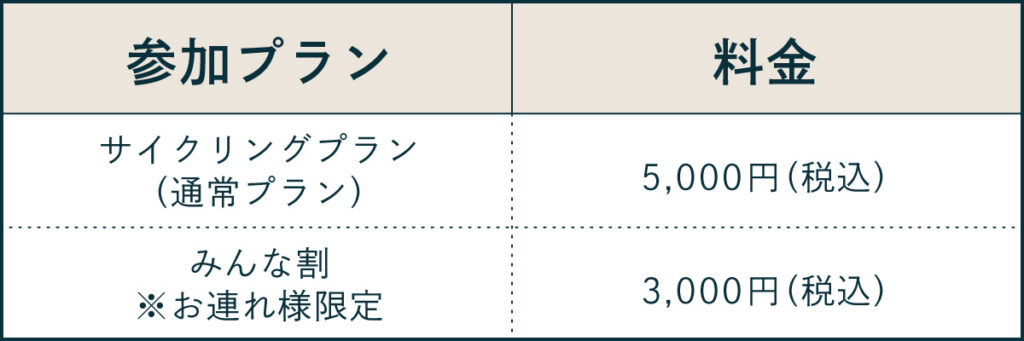 ※1グループにつき、サイクリングプランの申し込みが1名分必須となります。