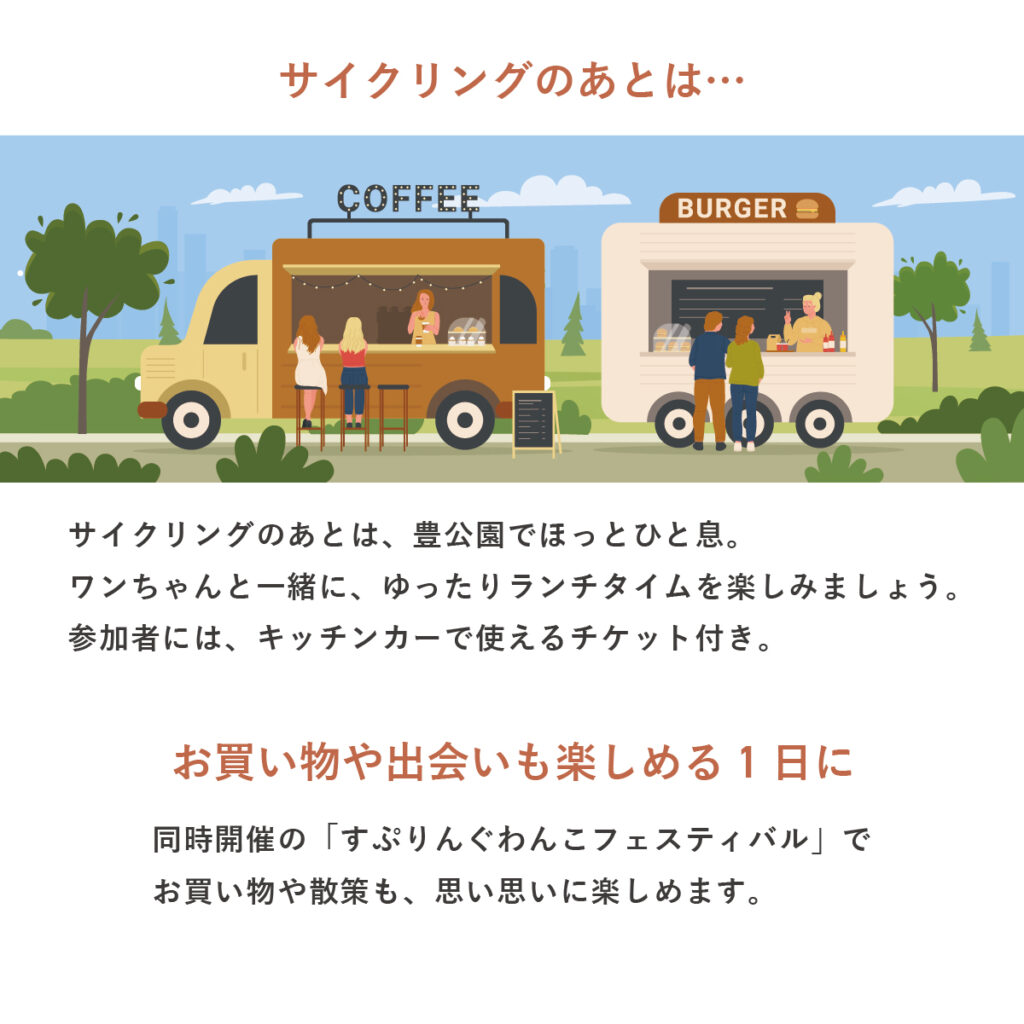 ワンライドカバー・レンタサイクル代・軽食代(キッチンカーで使えるチケット※当日限り)まで全部込み!びわ湖を愛犬と走る、特別な時間を手軽に。
