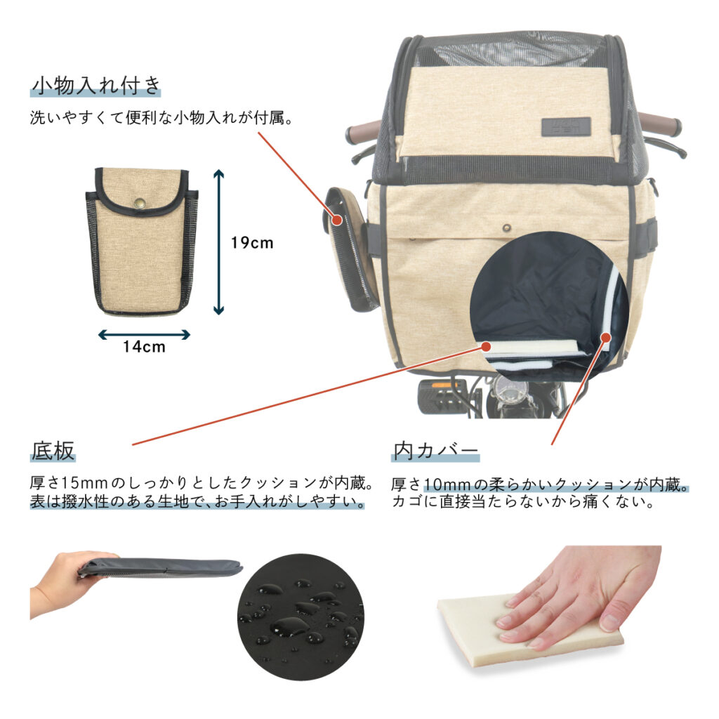 「ワンライドカゴカバー」は、愛犬とのサイクリングをより安全・快適にする専用カバーです。