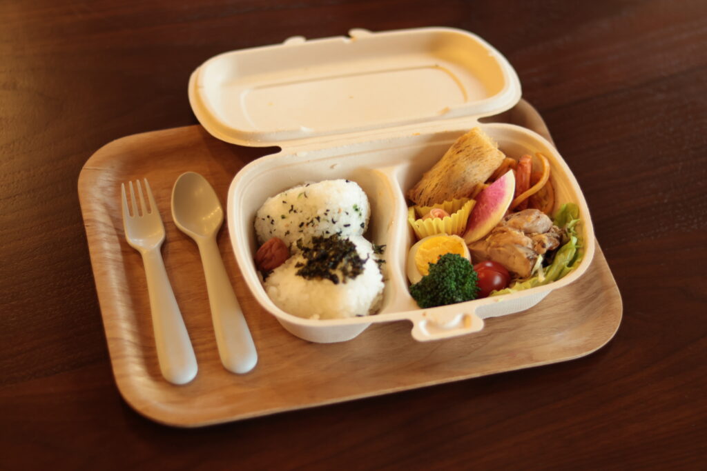 ここでは、園の近くにある山田の棚田で作られたお米と染河内地域のお野菜を使用したお弁当をいただきます。