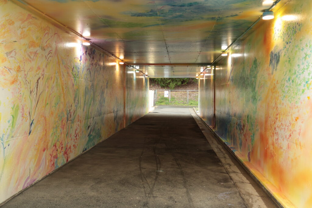 宍粟市出身の美術作家 植田志保さんが壁画制作をされた、中国自動車道山崎インターチェンジ歩行者通路です。インスタ映え間違いなしのシソラミチで愛車と写真をパシャリ!
