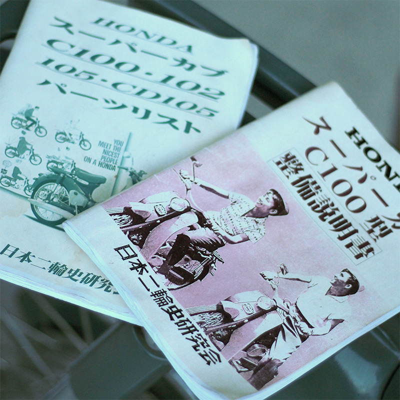 1958年発売「初期型スーパーカブC100」の展示を行います!なんと取説まで残っている貴重なスーパーカブです。