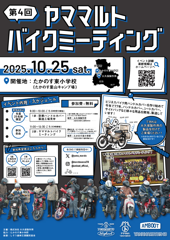 ビジネスバイク用ハンドルカバーを作り始めて今年で77年。ビジネスバイクを中心に、様々な用品を作り続けてきた、大久保製作所(ヤママルト)が長年ご愛用頂いている”ヤママルター”のみなさまに77年間の感謝の気持ち込めて開催するイベントです。