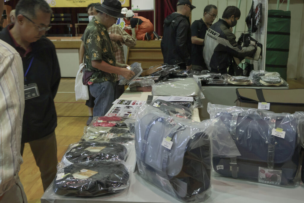 【2部】たかのす東小学校で大久保製作所の用品をつけたバイクが集まり、親睦交流・ビンゴ大会・キッチンカーでの飲食、グッズ販売(Tシャツ、ステッカー、B級品等)など。