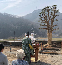 26日に植樹式をしていただいたのですが、宮司さんの祝詞奏上が、これまでの経緯も織り込まれていて驚き、凄く印象に残りました。