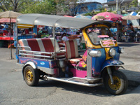 昨日の朝の通勤時ちょっと変わった乗り物とすれ違いました。東南アジアの乗り物で、写真でよく見る乗り物と思いますが、まさか国道を堂々と走っているので改造車と思いますが・・・ すれ違いの為、写真も撮れずイメージ近い写真を一緒にUPします。 ほとんど写真に近い車両で、一回り大きく、但しハンドルはむき出し、屋根付き、シートは2列カラフル、スピードは普通車と変わらず。 機会があればもう一度遭遇してみたい。