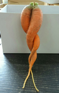 工場の畑でとれた人参のなかに見つけました。