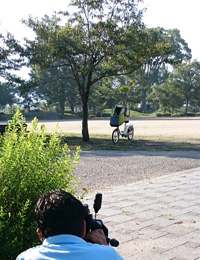 2枚の写真に数時間、太陽の光と蚊と戦いながら、重い自転車をあっちこっち数センチ単位で振ったり、「あれとって来い、走れ〜〜」((( ̄へ ̄井)と走らされたり。汗をカキカキ。時間との戦いでもあります。