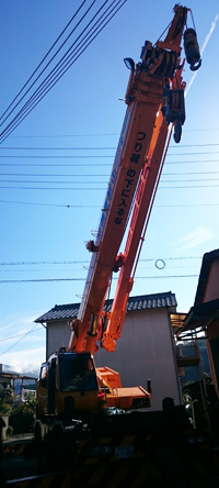 それにしても大きなクレーン車、この狭い所に入り電線を越えての作業を短時間で終えてしまうところは流石プロですねぇ