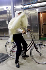 70代女性 自転車の運転にはあまり自信がありませんので、ポンチョをかぶっての実験は大変心配していましたが、 難なく乗れました。かぶる前と後でなんの差も感じませんでした。