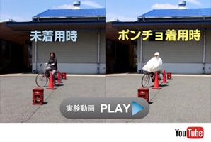 当社の「自転車屋さんのポンチョシリーズ」は、自転車走行の安全性を一番に考慮した商品であることを、 消費者の皆さまにご理解いただけるように、下記の自社実験を行いました。