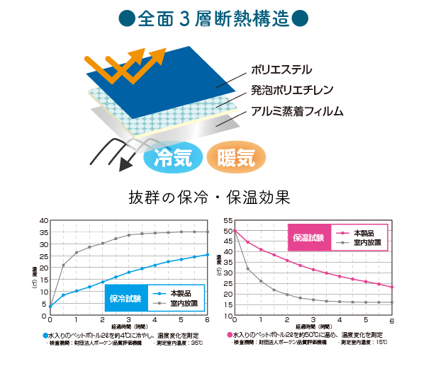 5mmの分厚いアルミ生地で、保温保冷効果が長持ち