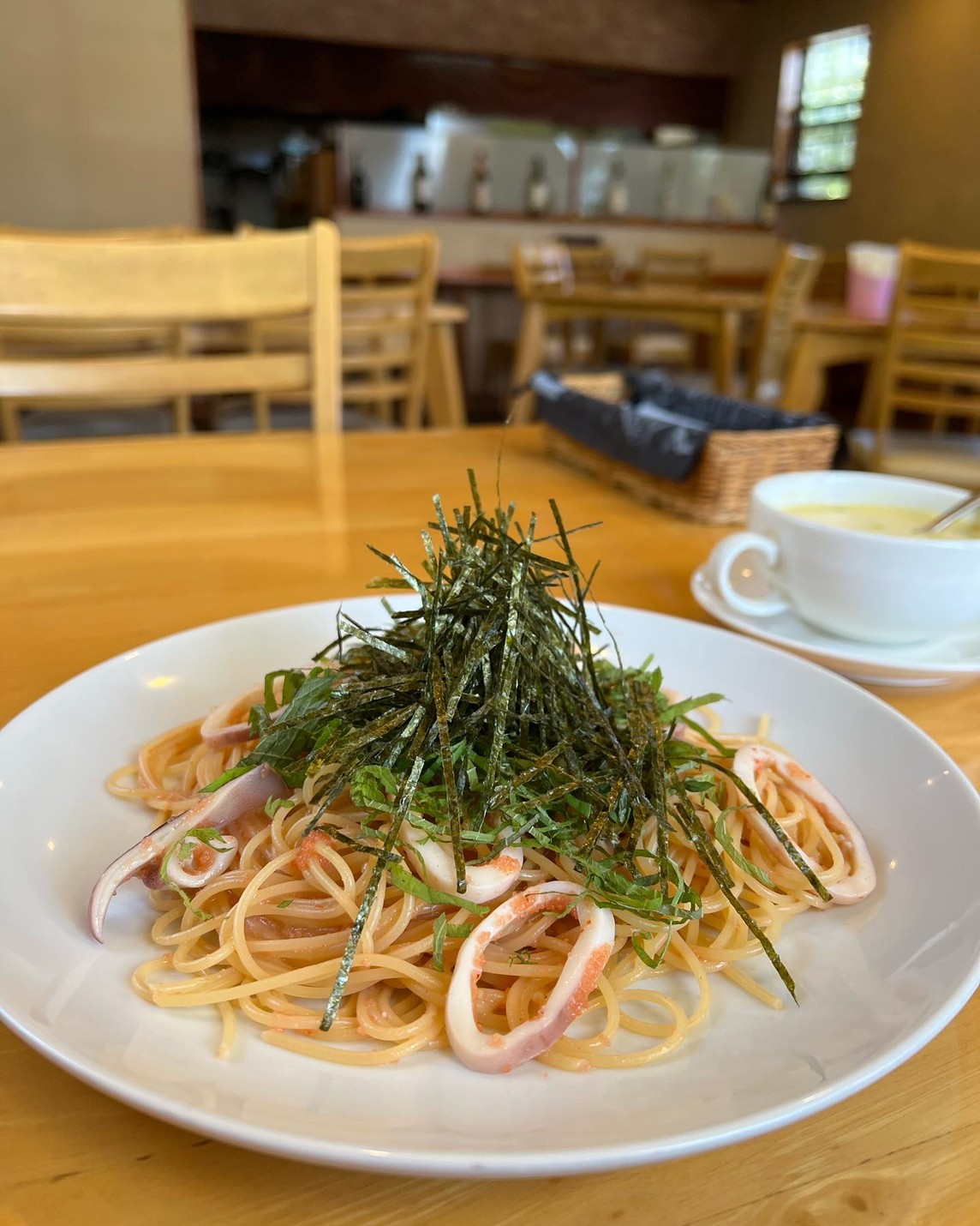 帰りに29号線沿いのチェントペルチェントで明太子とイカのパスタをランチにチョイス♡
