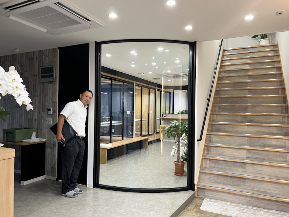 設計担当の社員一人一人に部屋があり、リモートに対応した遮音効果と生産性を上げる為の共有スペース。社員の事を大切にされている矢崎社長。やっぱり、建物には、経営者の思想が反映されますね。元気を頂きました。ありがとうございます。