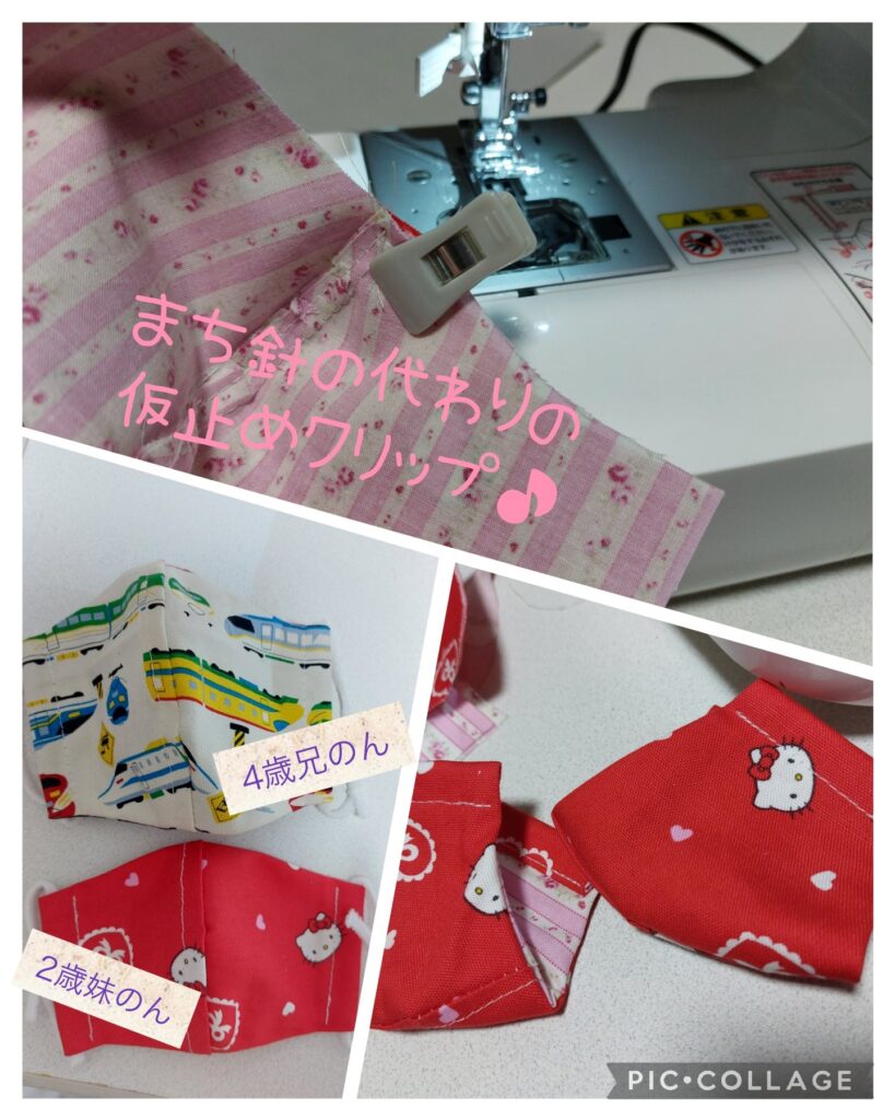 まち針で止めていてチクッと刺さるのが苦手な私、100均で見つけた仮止めクリップを使用☆