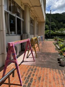 そうですよ!龍野北高校のデザイン科の生徒さんが制作してくれたラックです。まだまだ現役。イベントの時に宍粟市からお借りしてます。