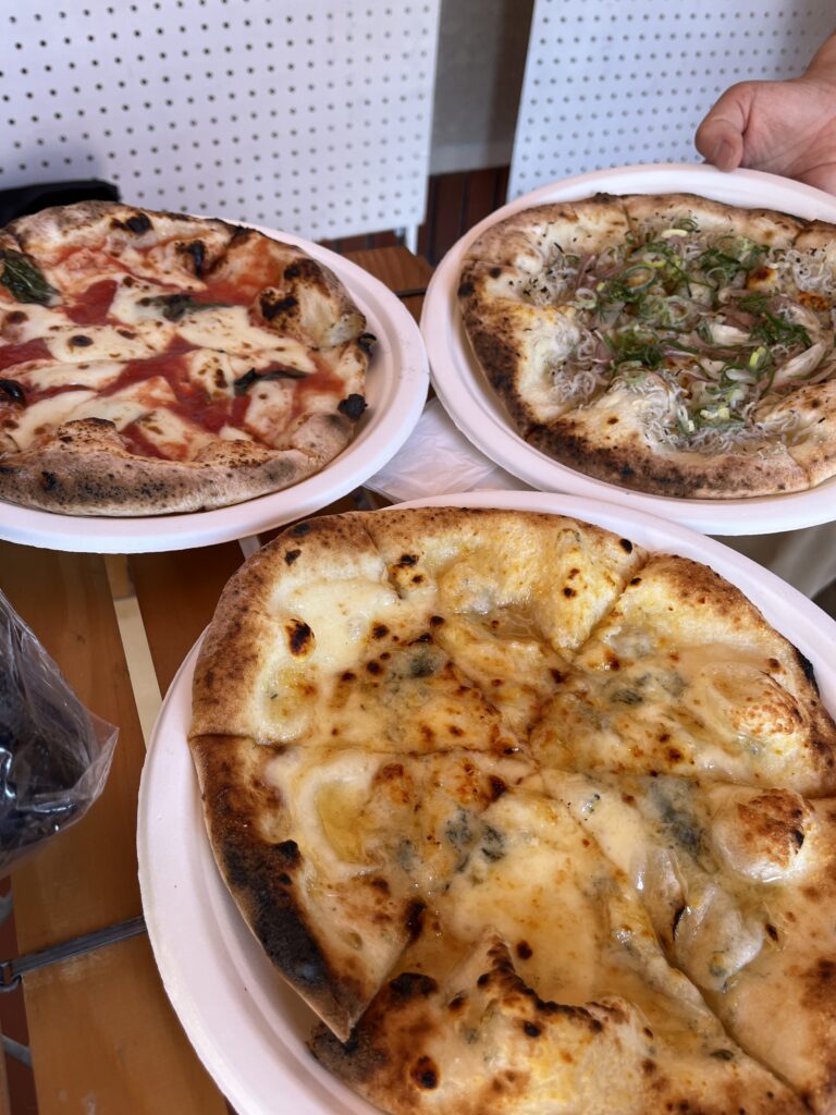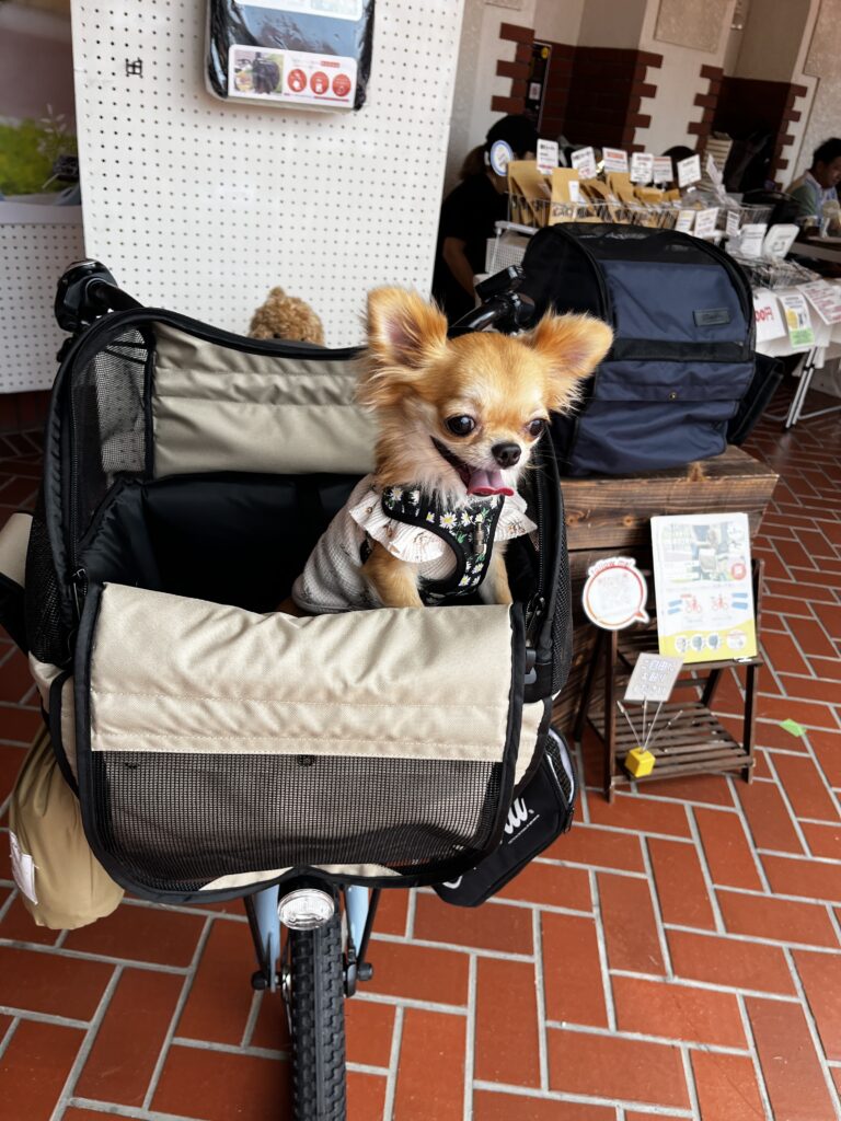 マルシェでは愛犬のおやつや洋服を物色し、キッチンカーのピザやコーヒーも楽しんで来ました。飼い主はちょっと息抜きもできました。