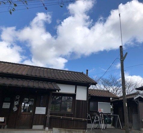 法華口の駅舎にて小休止、米粉パンと珈琲が美味しいです😁