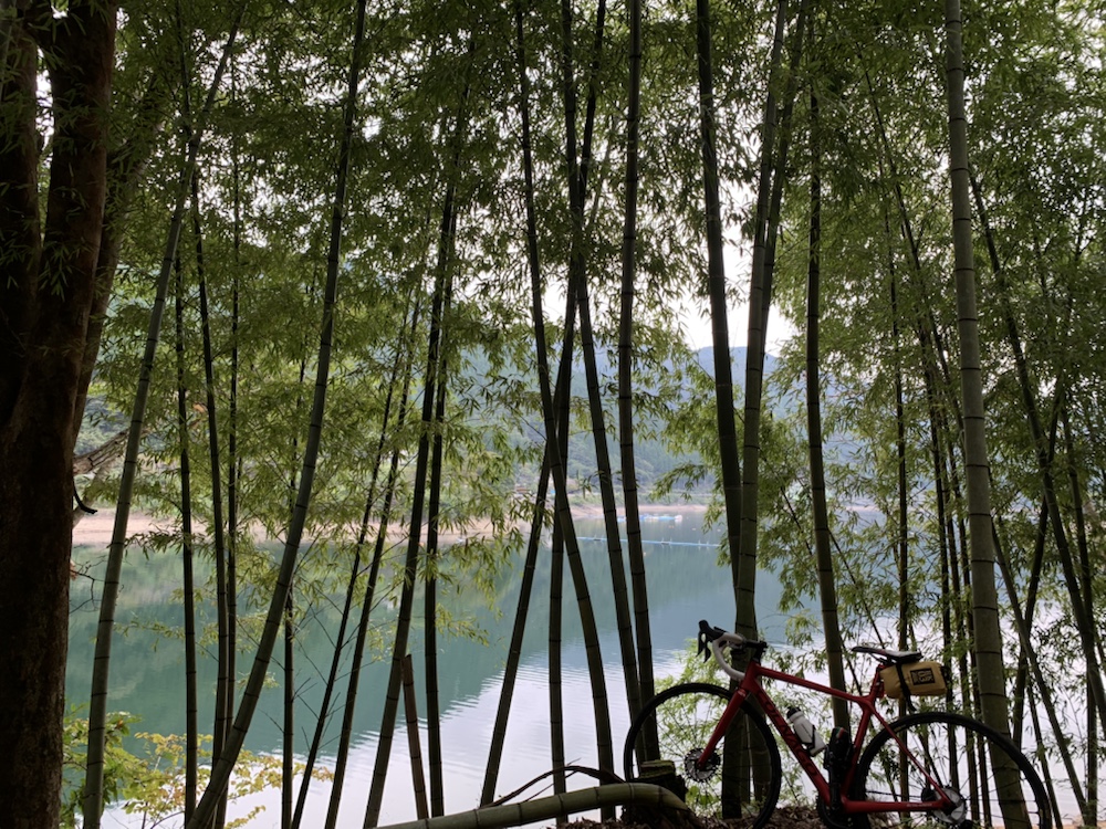 引原ダムの北、国道から外れて「さざなみ公園」に入ると静かにのんびりのポタリングタイムが始まります。