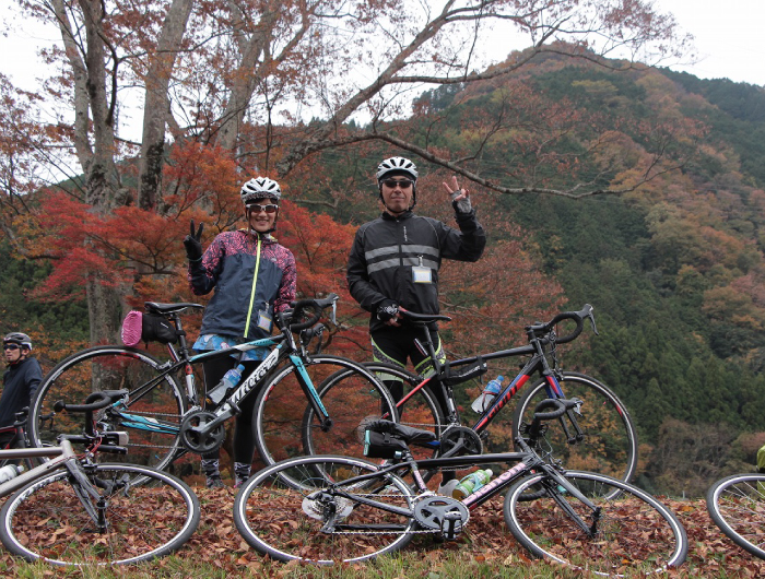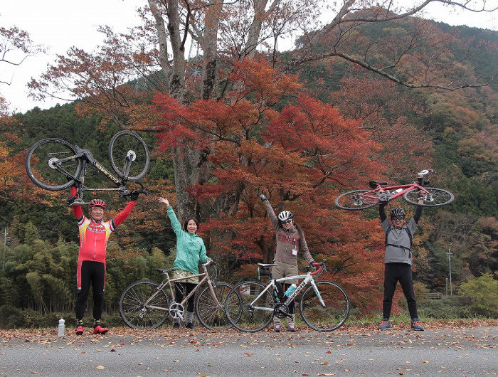 「流れ橋」に行く予定で時点syあを走らせていましたが、途中で紅葉の絶景写真撮影スポットを発見!みんなで写真撮影を行いました!