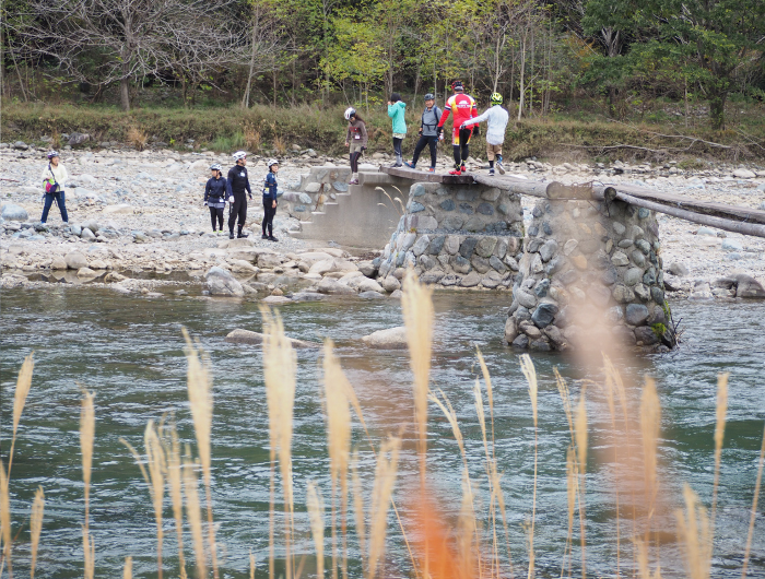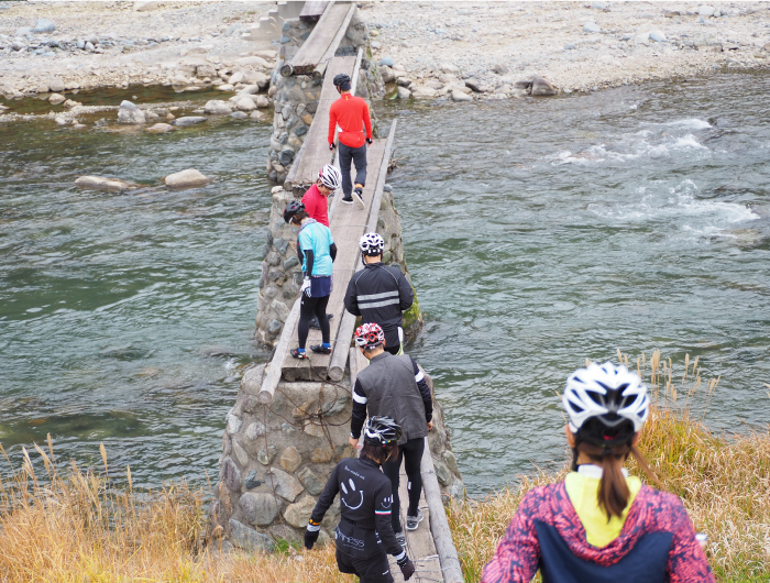 流れ橋に到着~みんなで橋を渡り、またまた写真撮影!