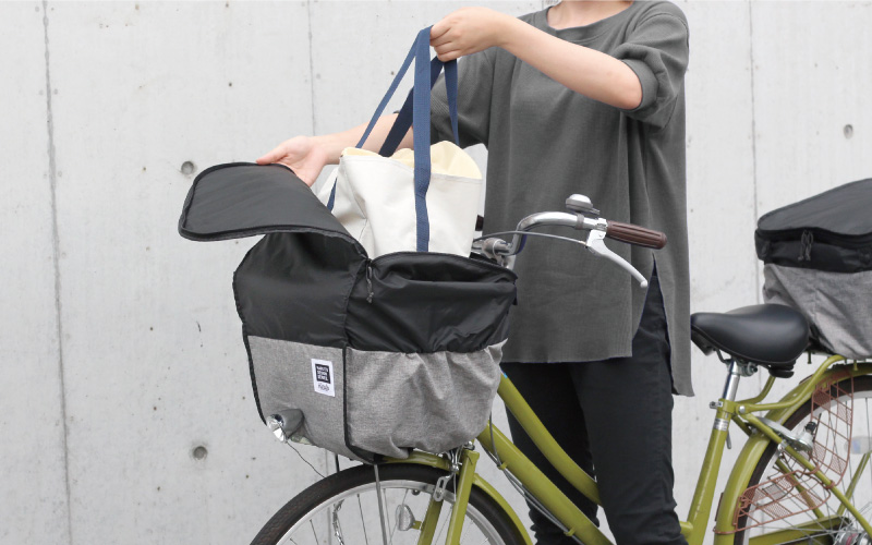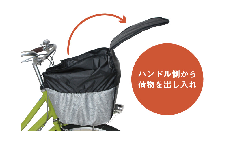 | 商品の特徴 | ・ハンドル側から開閉できて荷物の出し入れもらくらく♪ ・ボタンを外せば容量UP!お買い物で荷物が増えた日でも安心。 ・一般車~電動アシスト車用カゴまで対応 ・フタの水がたまりにくい ・ファスナーの持ち手はひも付きで開け閉めラクラク |