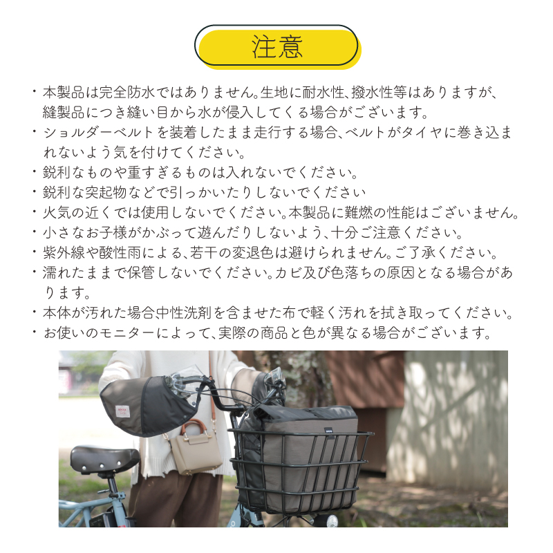 | 用途 | ショルダーバッグ ハンドバッグ カゴカバー 雨よけ ひったくり防止 通学 通園 買い物 お出かけ 散歩 |