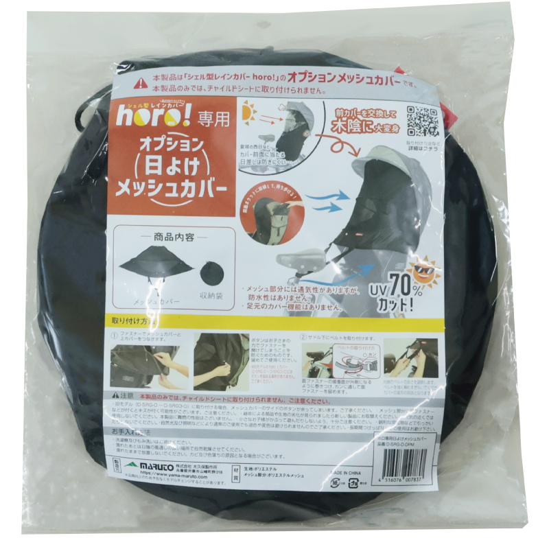 ※本製品は「シェル型レインカバーhoro!」のオプションメッシュカバーです。本製品のみでは、チャイルドシートに取り付けられません。