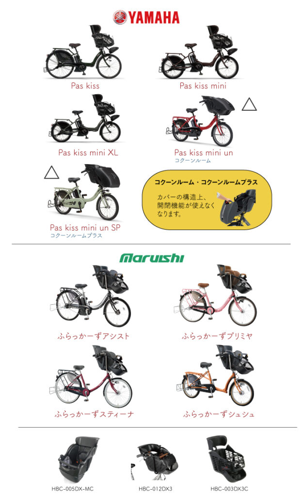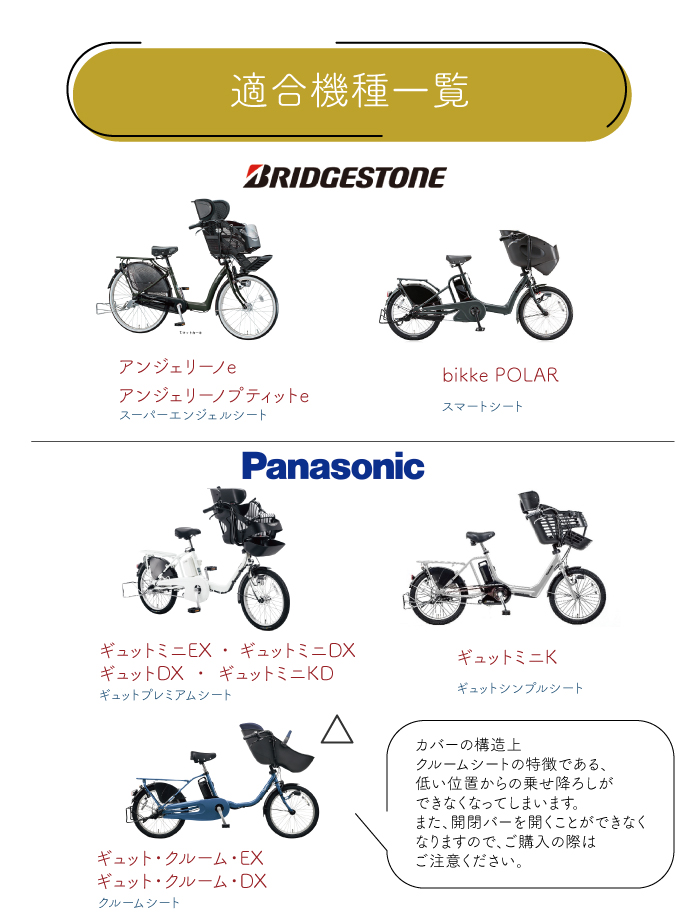 | 適応自転車 | ヘッドレスト付き前子乗せ専用シートがある自転車 ※ヘッドレストがないタイプや、後付けタイプにはご使用できません。 |