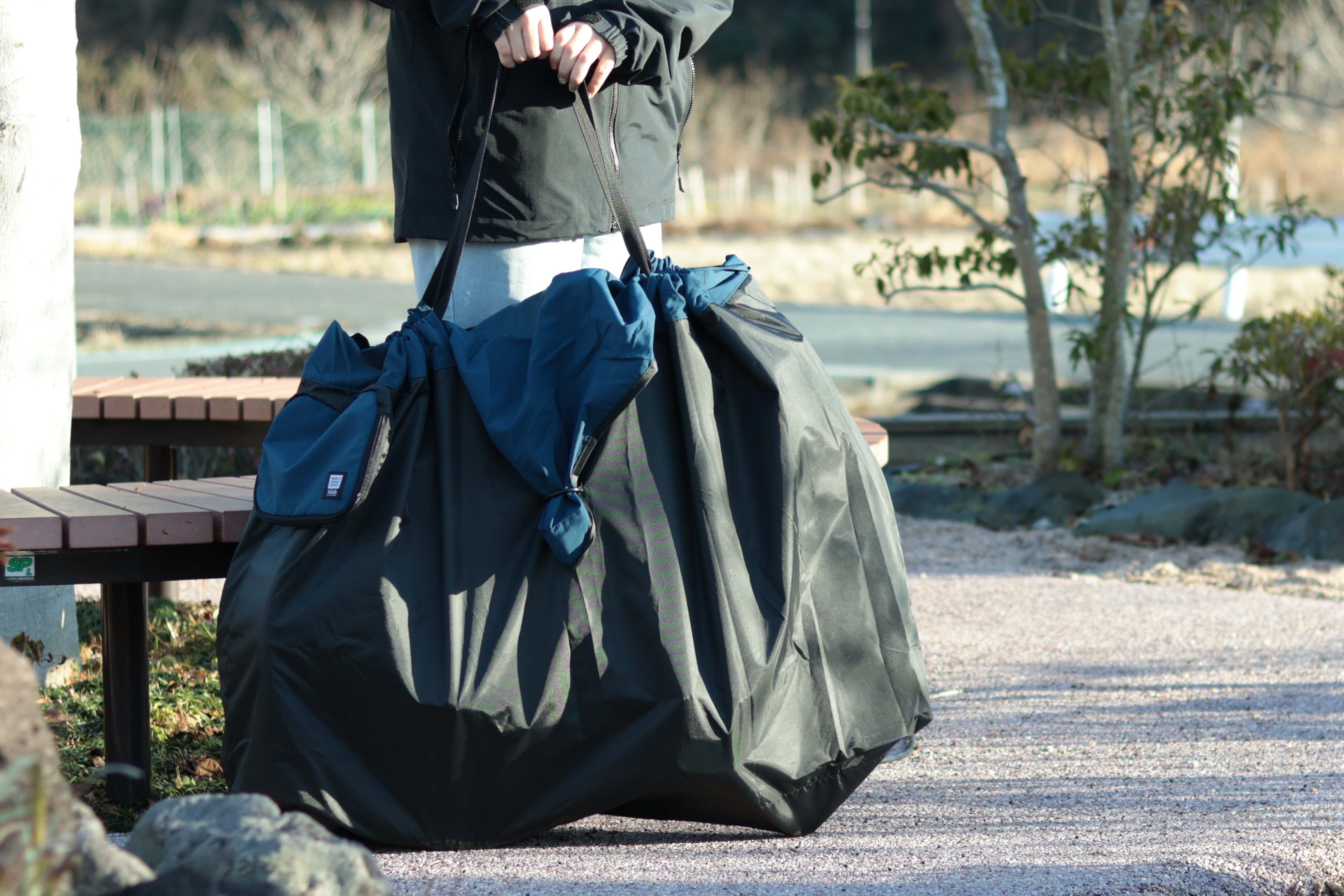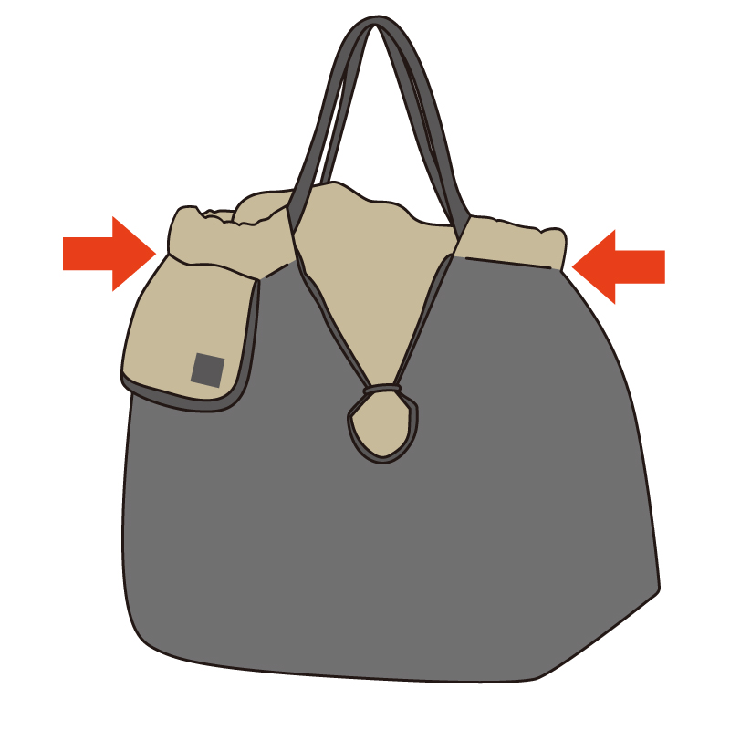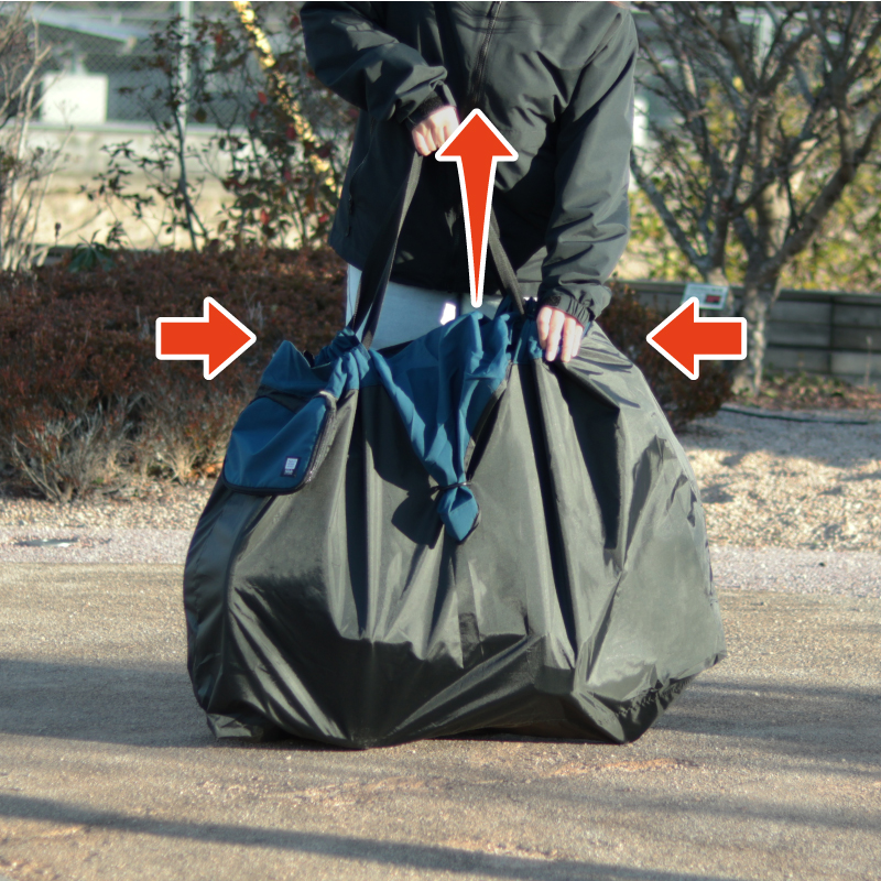 持ち上げるだけで口が自然に絞られ、自転車にぴったりフィットします。
