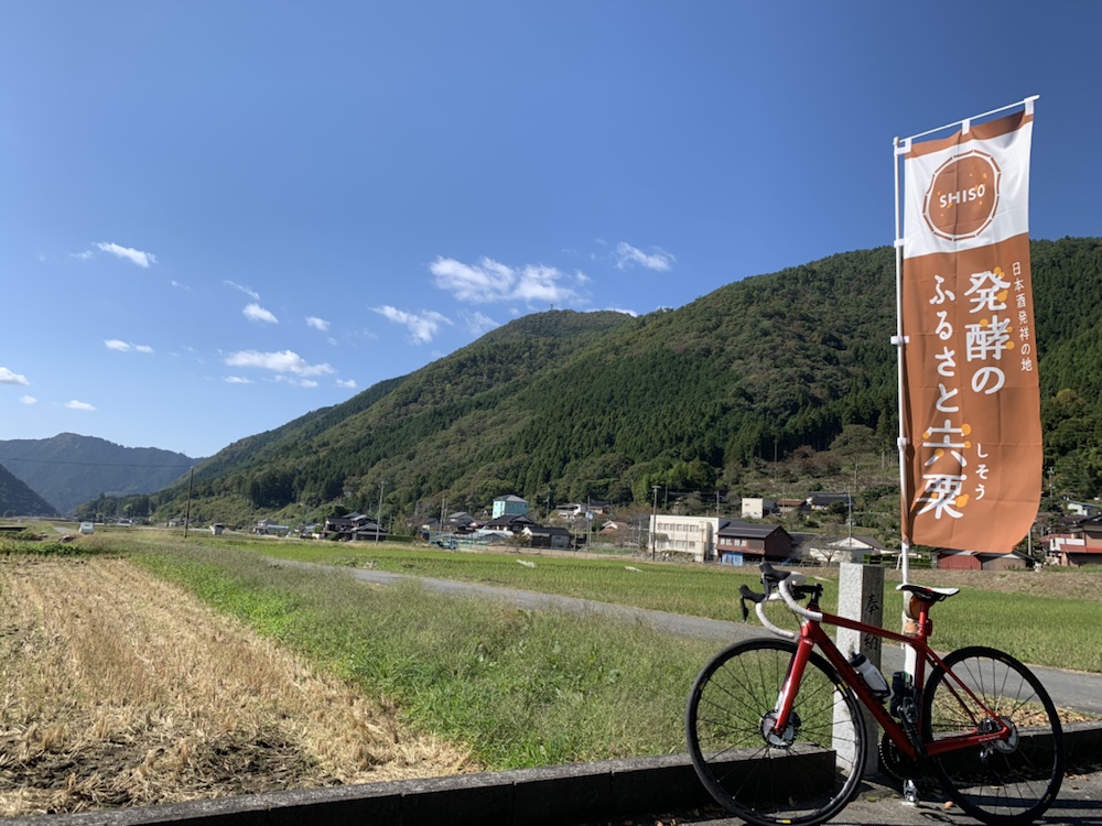 約3.5km程登りをコギコギ。宍粟市が観光で今、一番力を入れている。日本酒発祥の地?庭田神社が有ります。