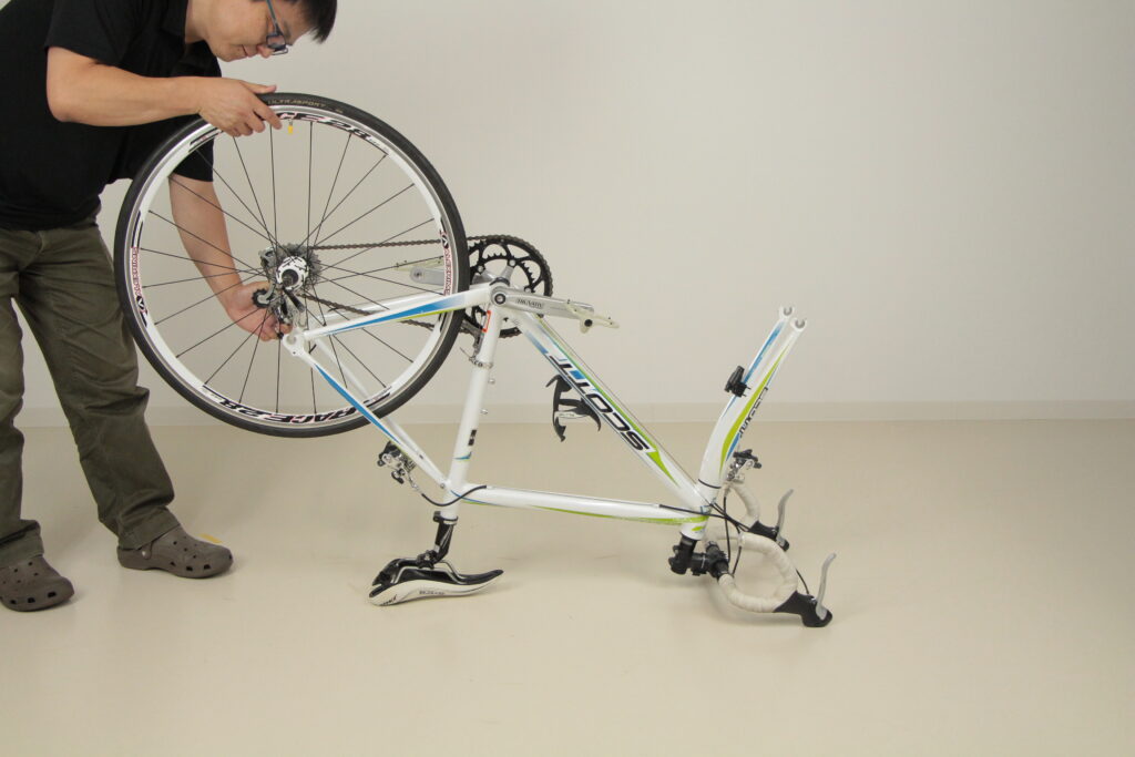 4.フレームにホイールを固定する